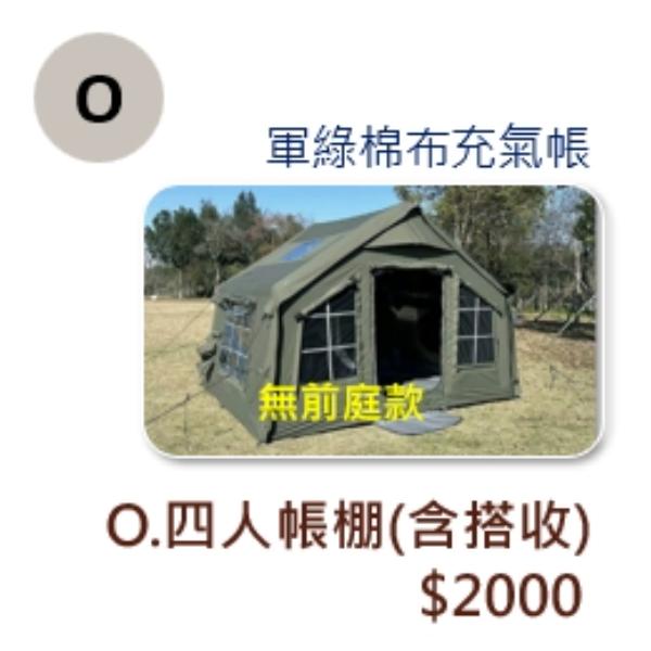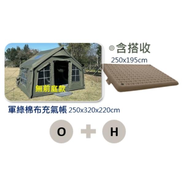 軍綠棉布充氣帳(附前庭)輕裝組合如圖示